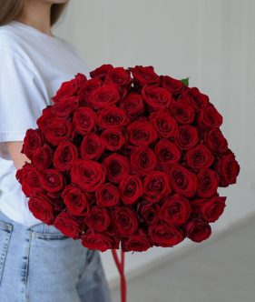 Стоимость букета зависит от количества роз, которое регулируется в меню конструктора с помощью "+/-". При этом, чем больше вы роз заказываете, тем дешевле цена одной розы в букете.