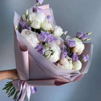 - Универсальность: На одной ветке эустомы может быть несколько бутонов разной степени раскрытия, что придает букету объем и динамику. Она прекрасно сочетается с розами, пионами и гортензиями.